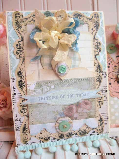 Take a deep breath, because this kit is going to take your breath away! Soaked in layers of pockets, chipboard accents, banners and exquisite paper combinations, iced with delicious ribbons and lace, then sprinkled with a pinch of glitter, these 12 cards just keep you looking to take in all the details! Created by Guest Designer, Cherry Nelson, we're delighted to offer this kit of designs for 12 cards, 1 pocket and 3 tags. Kit ingredients include: 6 cream 12x12 cardstock papers, more than 8 sheets of 12x12 patterned papers, 1 pack of 12 diecut cardstock 12" banners and 1 sheet of banner stickers from the Melissa Frances C'est La Vie collection, 4 digital images, 1 naked chipboard 12" border, 1 pack of Pink Paislee London Market chipboard buttons (26 pieces), 11 journaling cards from Prima's Almanac collection, 9 flowers from Prima, 3 doilies, 6 organza flowers, 1 pack of chipboard accents from Prima's Almanac collection (25 pieces), 1 pack of chipboard butterflies from Studio Calico (39 pieces), 1 pack of 6 small pockets from Simple Stories, 13 naked chipboard accents, 4 crystal dangles, 1 paper butterfly, 30 buttons, 3 yards of twine and 18 1/3 yards of ribbons, laces and trimmings! Instructions come with color copies. Additional products needed, but not included: cream paint, light pink or white glitter and brown ink. Please visit our gallery under Cherry Nelson Designs to view all images of this kit. Kit price is $64.00.
